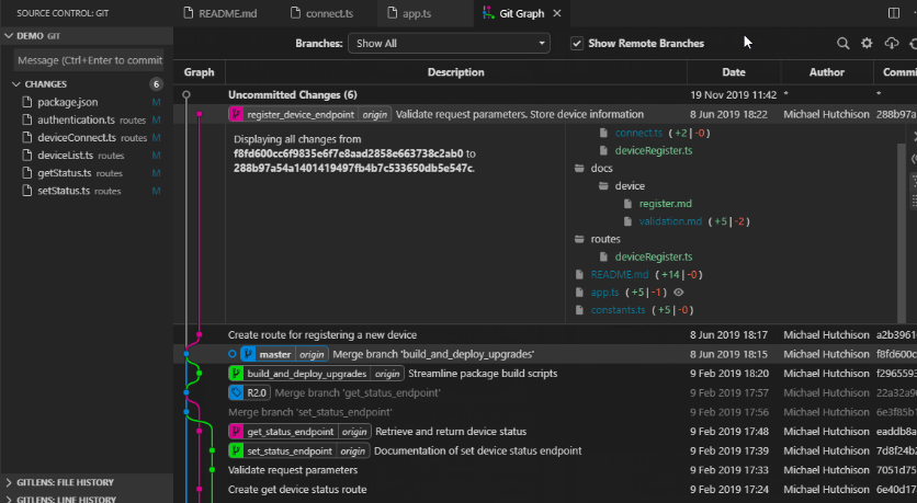 Git Graph扩展可以清晰地展示git仓库的分支的历史提交信息和合并情况,因此强烈建议安装使用。