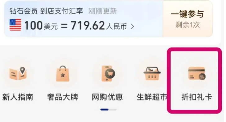 - 找到【折扣礼卡】